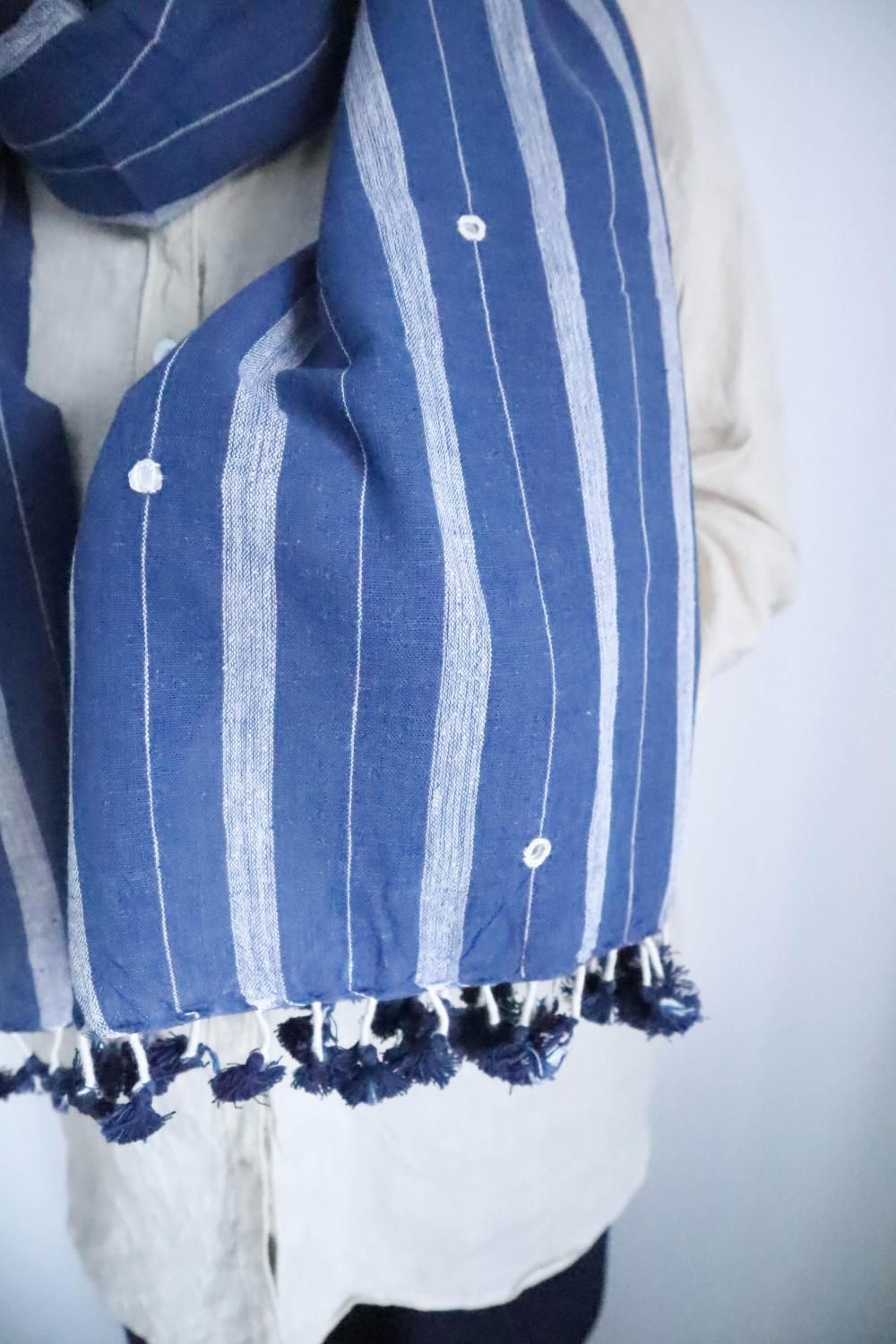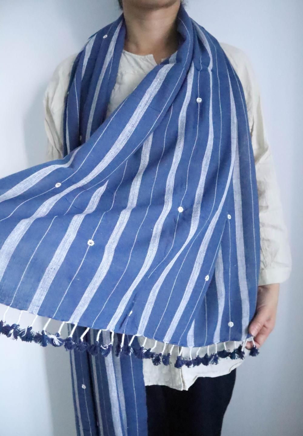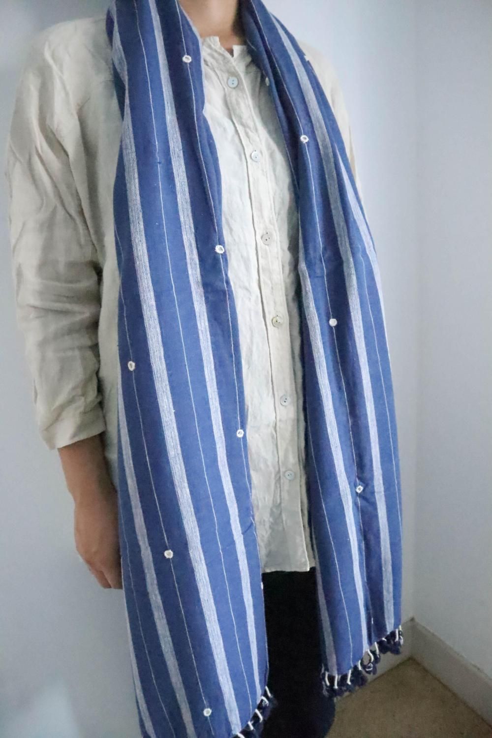 大自然の恵み、 インド・カディ生地に現地の手仕事を多才に使った、 カラコットンストール。