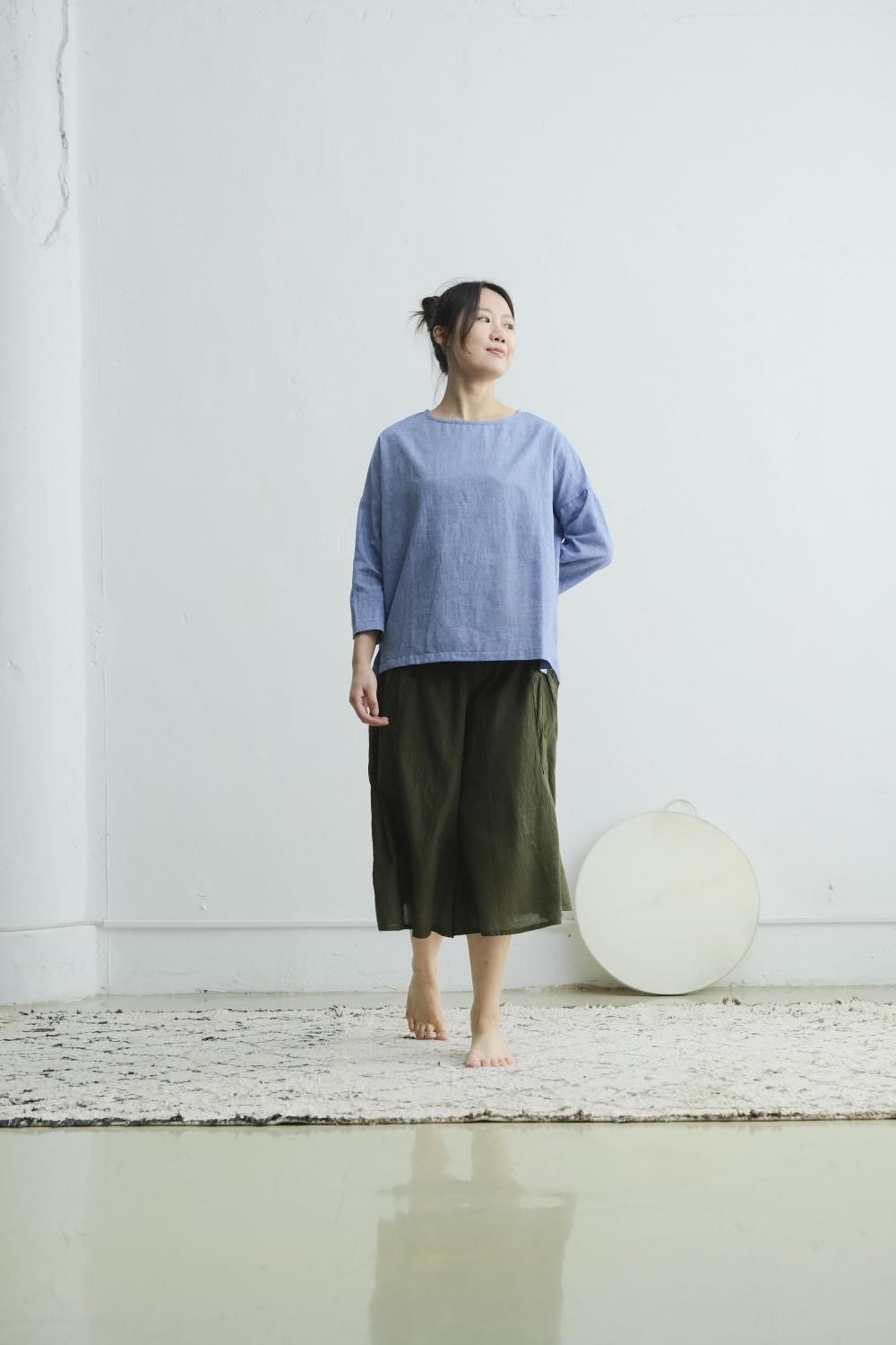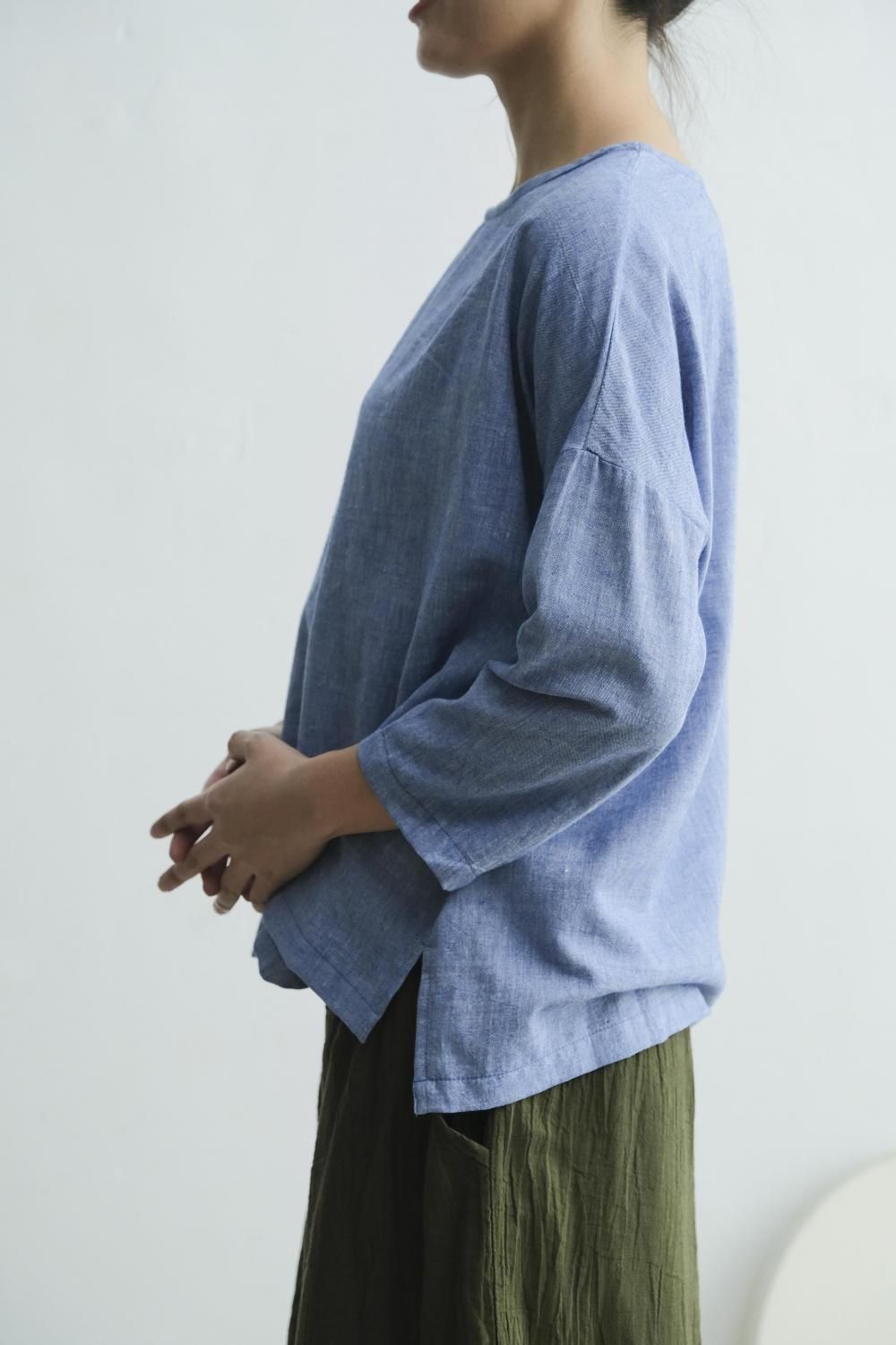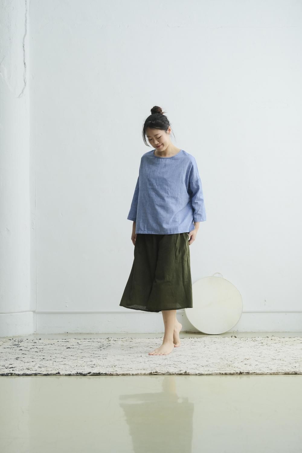 khadi ラウンドネックトップス blue RTSL-SK25-Blue