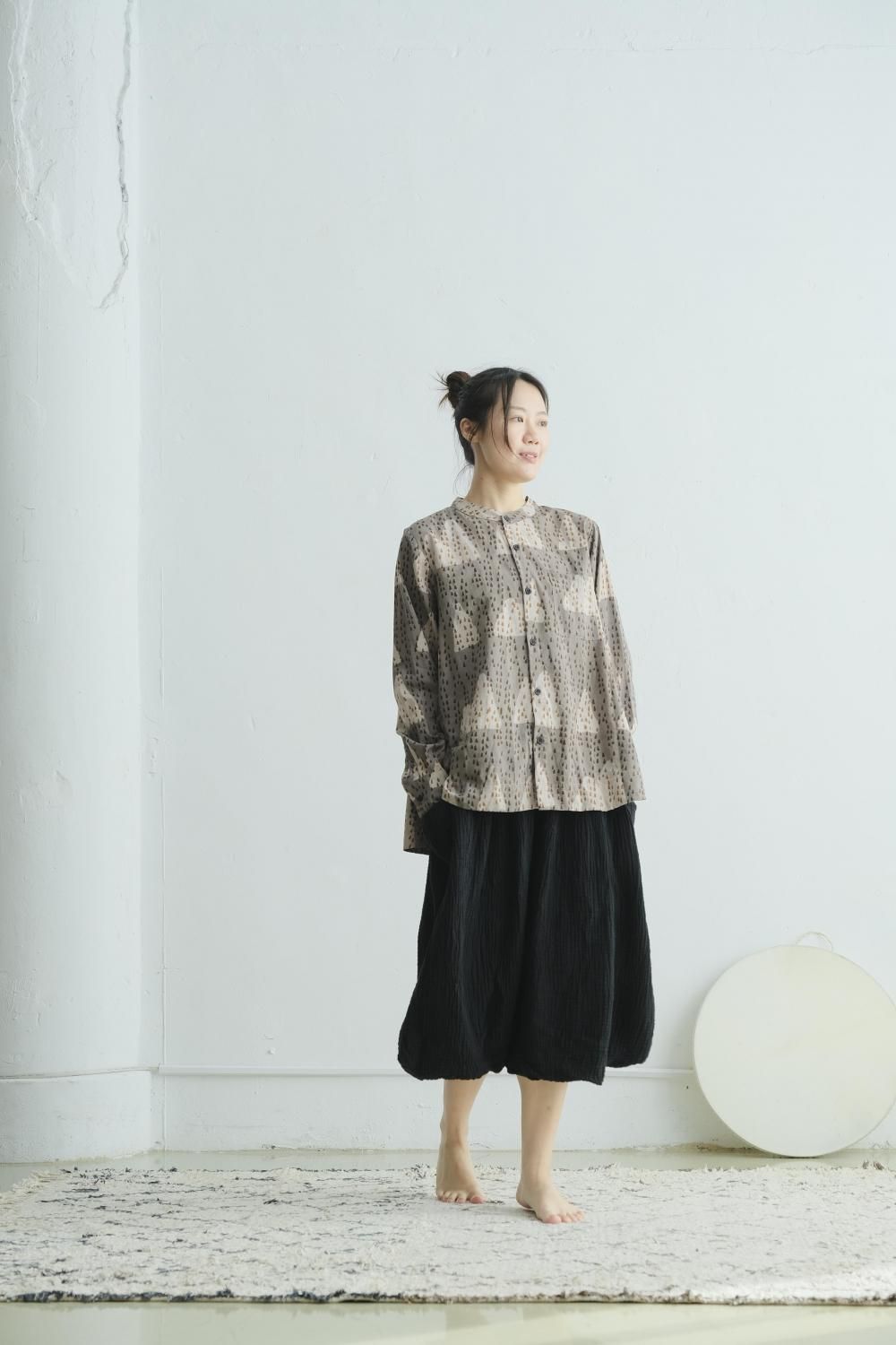 春を待ちわびる喜びを表現したkhadi ラウンドネックトップス。カディ生地と特徴的なデザインが暖かく、一点一点手染めされた個性豊かな一着。